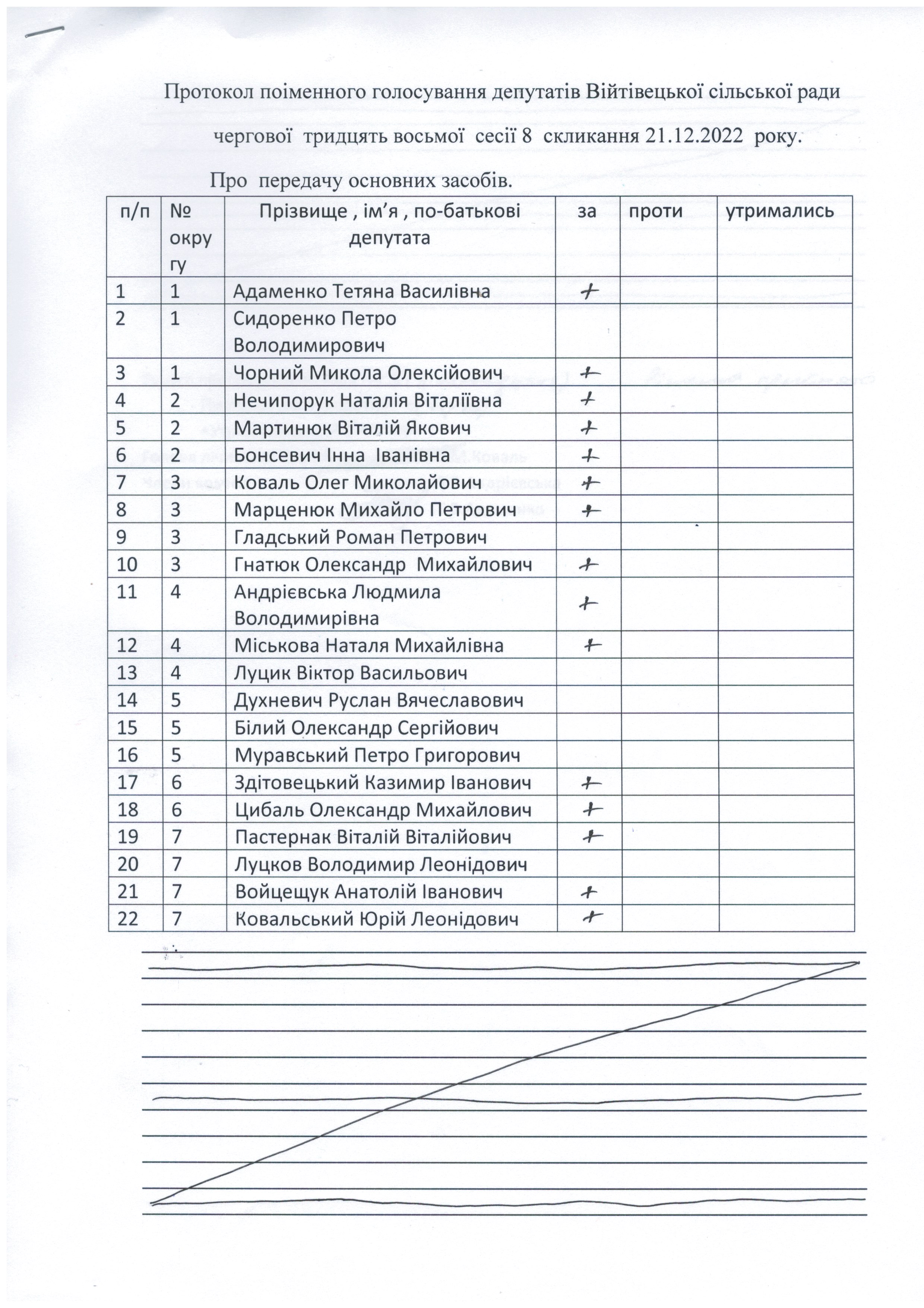 Рішення сільської ради від 21.12.2022 № 549 «Про передачу основних засобів»